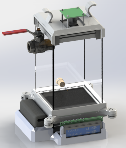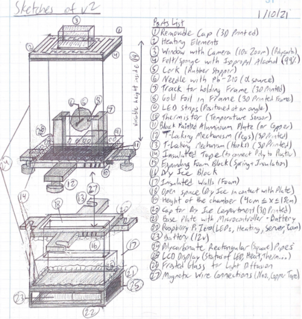 Constructing the microCloud chamber required overlapping expertise in CAD, mechatronics, physics, microcontrollers (Arduino and Raspberry Pi), and IoT. Below are examples of sketching, CAD, manufacturing, circuitry, and web hosting.