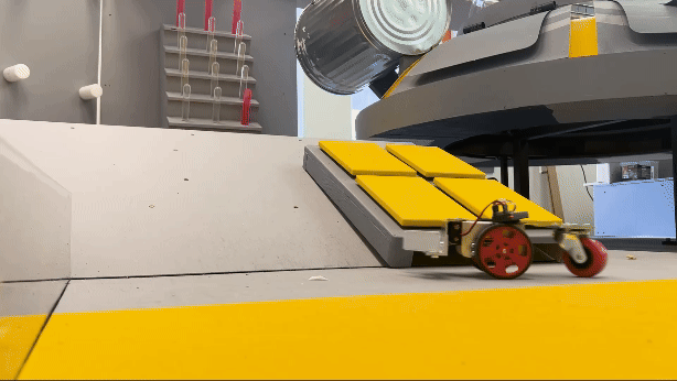 With the addition of the front claw, the MiniMe encountered issues climbing the 25-degree incline, which was necessary for later challenges.