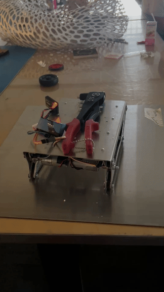 I then designed a metal model with steel hinges, lowering the CM and moving the claw to avoid colliding with the ramp.