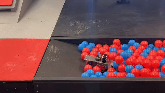 Key Idea: By making a narrow wheelbase, the robot can drive in the space between the buttons. Furthermore, to avoid bottoming out when climbing onto the panel, continuous contact with the ground is maintained with tank treads.